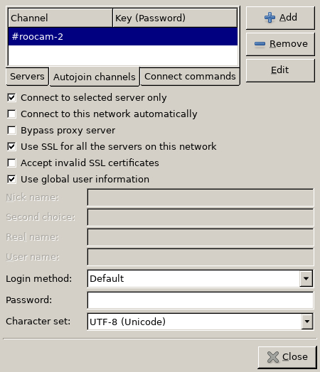 You may also want to configure HexChat to auto-join the RooCam-2 channel.