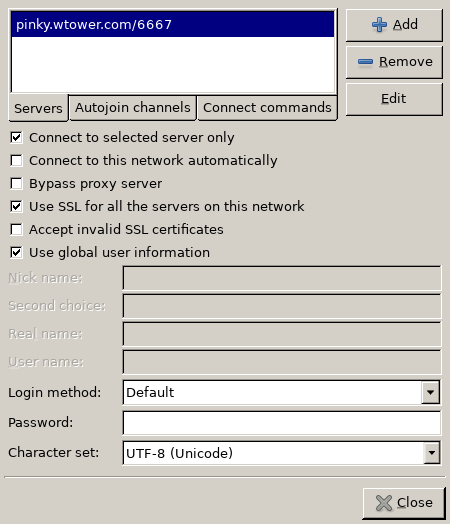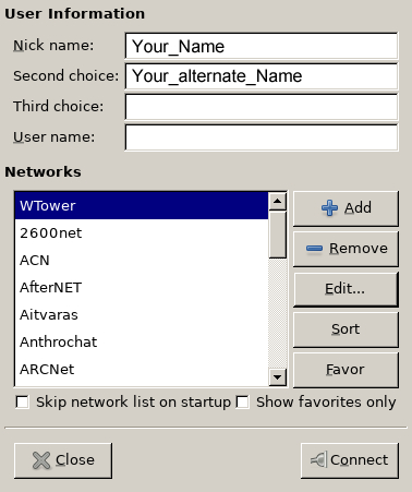 Start HexChat and add "WTower" to your network list.